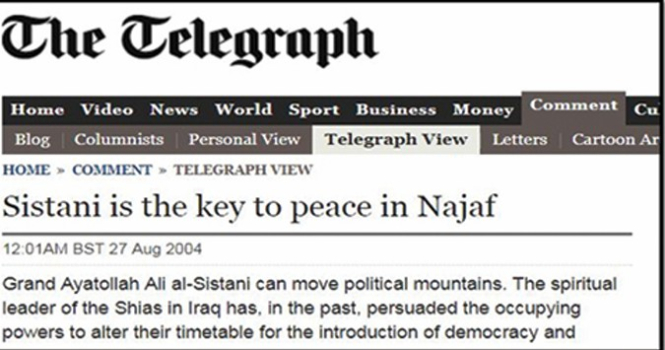 من ذاكرة الصحف.. The Telegraph.. السيستاني هو مفتاح السلام في النجف