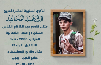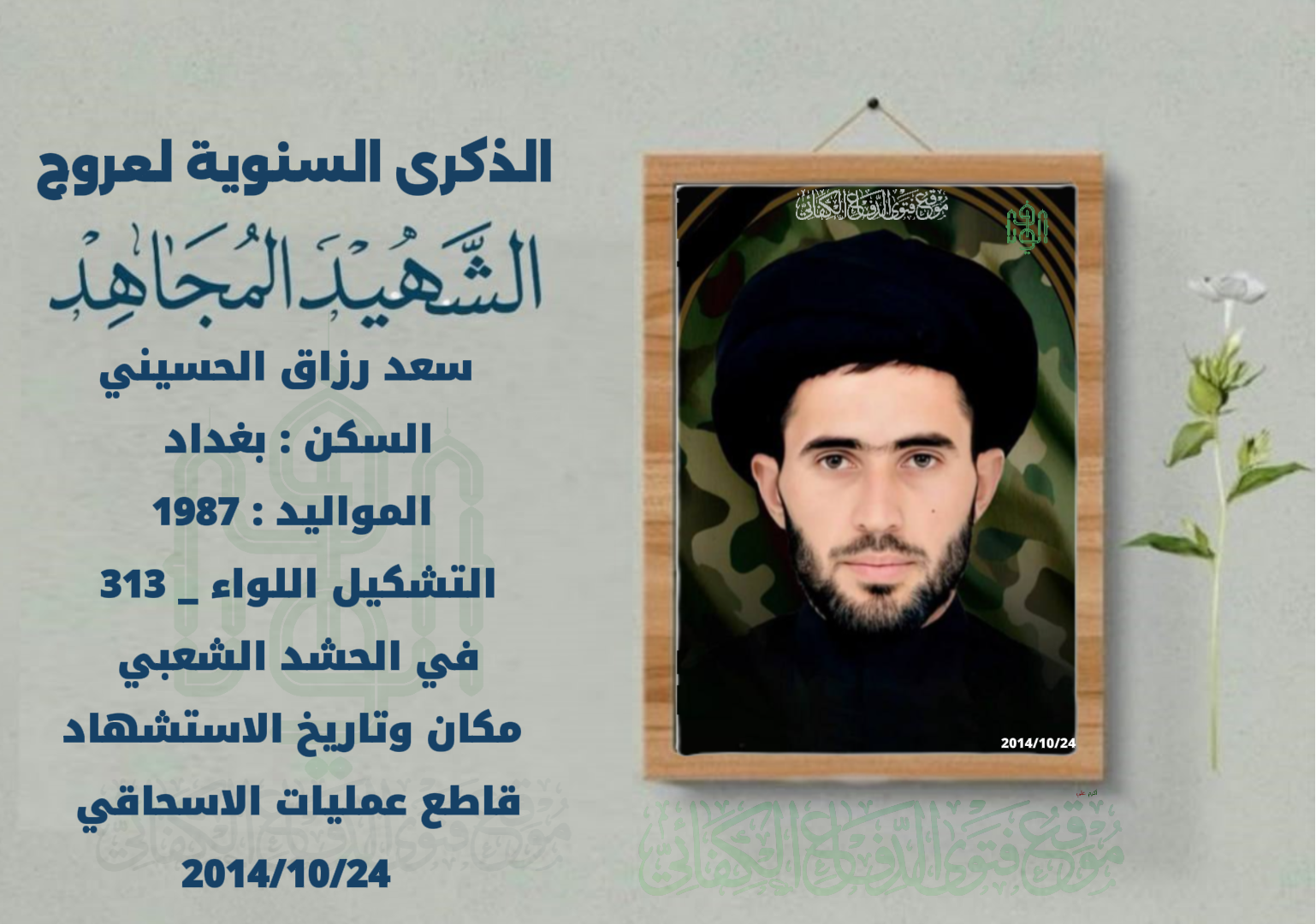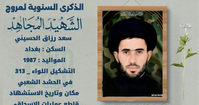 موقع فتوى الدفاع الكفائي يستذكر الشهيد المجاهد سعد رزاق الحسيني