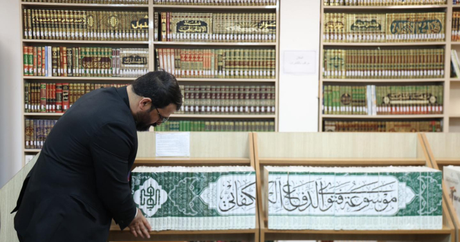 مؤسسة الوافي تستعرض موسوعة فتوى الدفاع الكفائي خلال فعاليات مهرجان تعزيز الذاكرة بجامعة الكوفة.