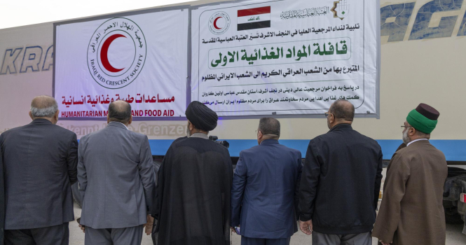 تحمل 690 طنًّا .. العتبة العباسية المقدسة ترسل قافلة المساعدات الأولى ضمن حملة دعم الشعب الإيراني