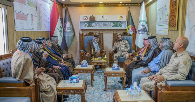لتقديم التهاني وبحث تعزيز خدمة الزائرين.. قائد فرقة العباس القتالية يستقبل وفد ممثلي المواكب ووجهاء قضاء الحسينية