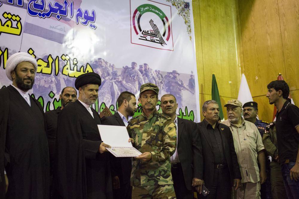 تيمّناً باليوم السابع من محرّم الحرام الذي يُحيي فيه المؤمنون سيرة وبطولات أبي الفضل العبّاس(عليه السلام) أقيم صباح هذا اليوم الأحد (7محرّم الحرام 1438هـ) الموافق لـ(9تشرين الأوّل 2016م) على قاعة نصب الشهيد في العاصمة العراقية بغداد محفلاً لتكريم جرحى الحشد الشعبيّ.