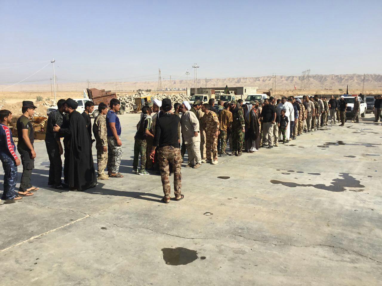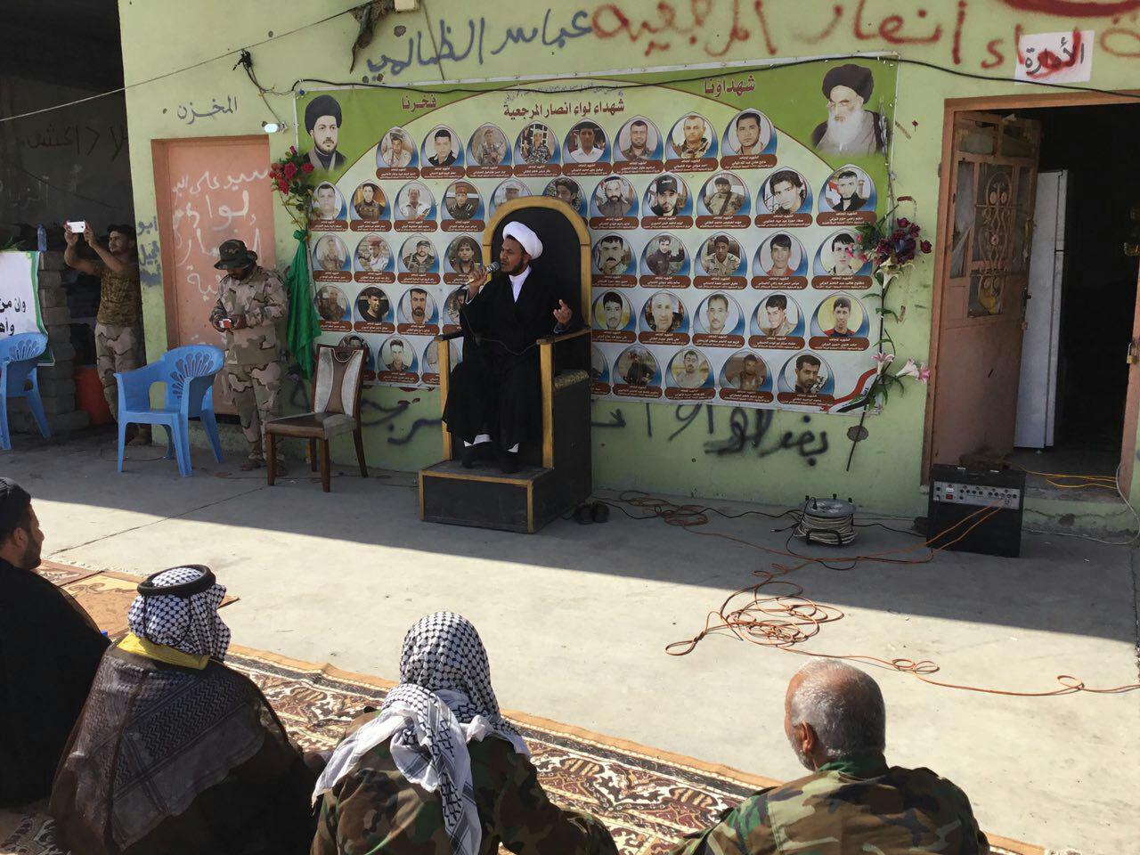 زار وفد من الحوزة العلمية في النجف الأشرف وجمع من أهالي منطقة التاجي شمال بغداد /هئية الإمامين العسكريين ع الخدمية قوات الحشد الشعبي المقدس / لواء انصار المرجعية في منطقة جبال مكحول شمال محافظة صلاح الدين .