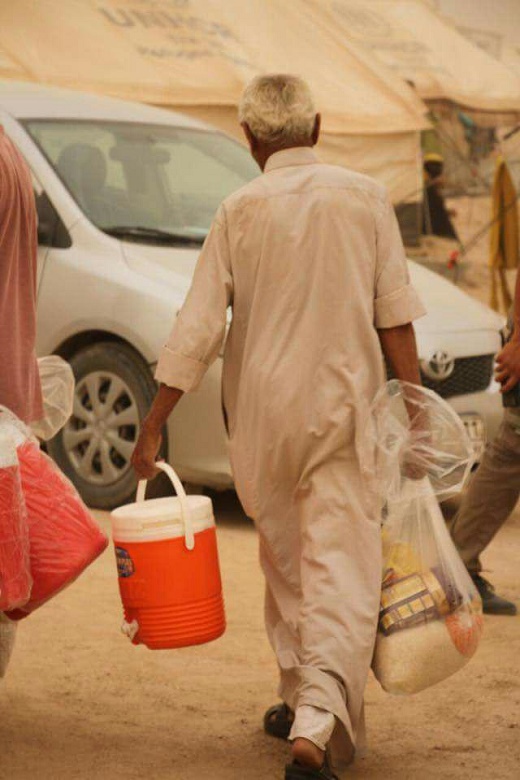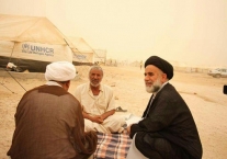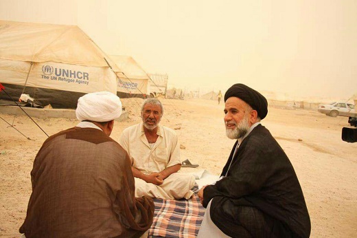 وفي هذا الحر اللاهب وسوء الأنواء الجوية بكثرة الغبار المتصاعد حيث كادت الرؤية تنعدم بسب تصاعد الغبار والعوائل النازحة تسير كالسرب إلا أنه لم يؤخر ذلك ذهاب وفد خلية الإغاثة اليهم من أجل تفقدهم ورفع بعض المعاناة وتخفيف ألم اللوعة التي واجهوها جرّاء العدوان الهمجي لداعش فبادروا في تقديم الطعام المطبوخ وماء الشرب وبالإضافة الى (١٠٠٠) سلة غذائية .أن المرجعية هي أب راعي لجميع العراقيين بكافة ألوانه وأطيافه ولابد من الإهتمام هذه الشريحة المنكوبة...