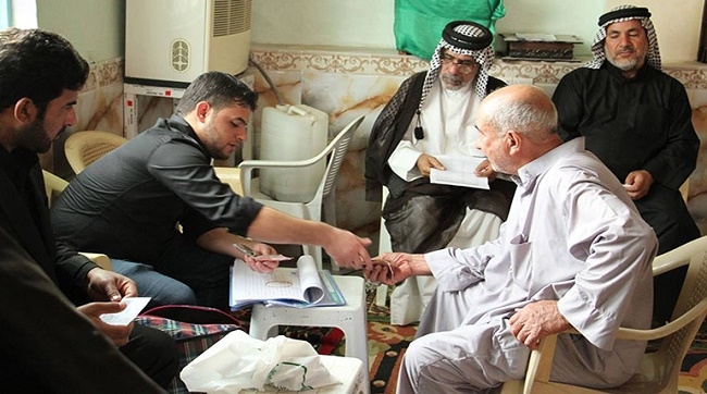بالصور :: العتبة الحسينية المقدسة تواصل توزيع الرواتب على شهداء الحشد الشعبي