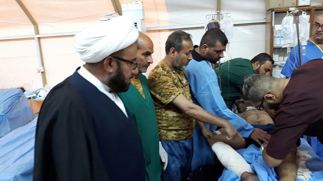 واضاف المحمداوي أن أحد الإخوة الجرحى تعرض لصدمة جراحية وبسرعة فائقة اعيد إليه الوعي وادخل إلى صالة العمليات لقطع النزف.... وقال الأطباء والكوادر الوسطية .بانهم على العهد مع المرجعية العليا باقون والى تحقيق النصر سائرون..اما الاخوة في مقر لواء علي الاكبر .الأخ الشيخ أحمد المنشداوي فقد ادينا الصلاة جماعة معهم وزيارة عاشوراء وهم متلهفون لتحقيق النصر مع جميع إخوانهم المجاهدين وقد سألت أحد الإخوة المجاهدين العائد توا من المعركة .قال والله نستشعر في تحرير القرى مسيرنا في زيارة الاربعين .حيث ينهزمون امامنا انهزام المنكسرين .والحمد لله هذا من ثمرات زيارة الاربعين .واللعنة الدائمة على أعداء العقيدة والدين ...يقول الجواهري
