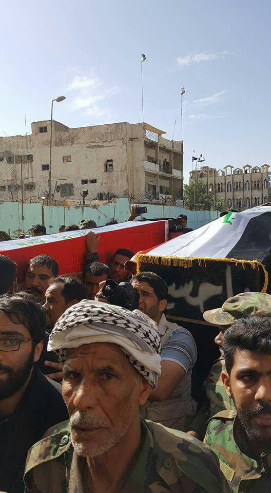 وأفاد مراسل كتائب الإعلام الحربي اليوم ،الثلاثاء ، بأن " جثامين الشهداء تم سحبها صباح اليوم من أرض المعركة حيث سقط الشهيدان أثناء معركة تحرير منطقة عين الجحش جنوب غرب الموصل ".