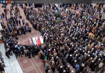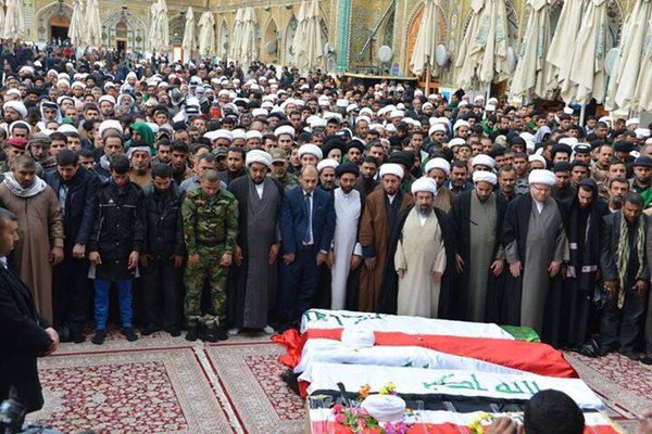 وقد دفن بملابس الشهادة كما هي فتوى المرجعية ووصيته أيضا.