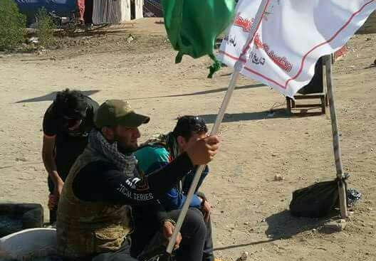 علم يحمل صورة شهيد استشهد حديثا في عمليات تحرير الموصل