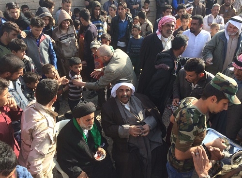 يظهر تقرير مصور نشرته اللجة مؤخرا، رجل دين شيعي ، يعتمر العمامة السوداء ،وسط العشرات من الرجال السنة، في مركز ناحية (حمام العليل) جنوب الموصل ،التي حررتها القوات العراقية المشتركة بعد معارك شرسة مع تنظيم الدولة الارهابي (داعش ) قبل ايام قليلة من التقاط الصورة .