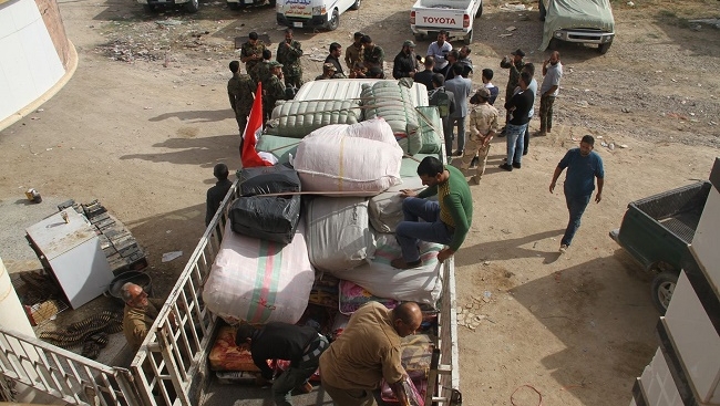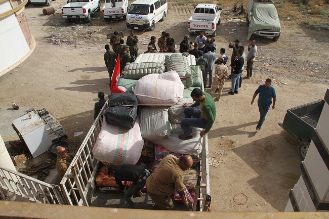 اللجنه العليا لدعم الحشد الشعبي وبمشاركة واسعة من تبرعات كلية الامام الكاظم تسير قوافلها لدعم القوات الأمنية والحشد المقدس الى قواطع القتال .