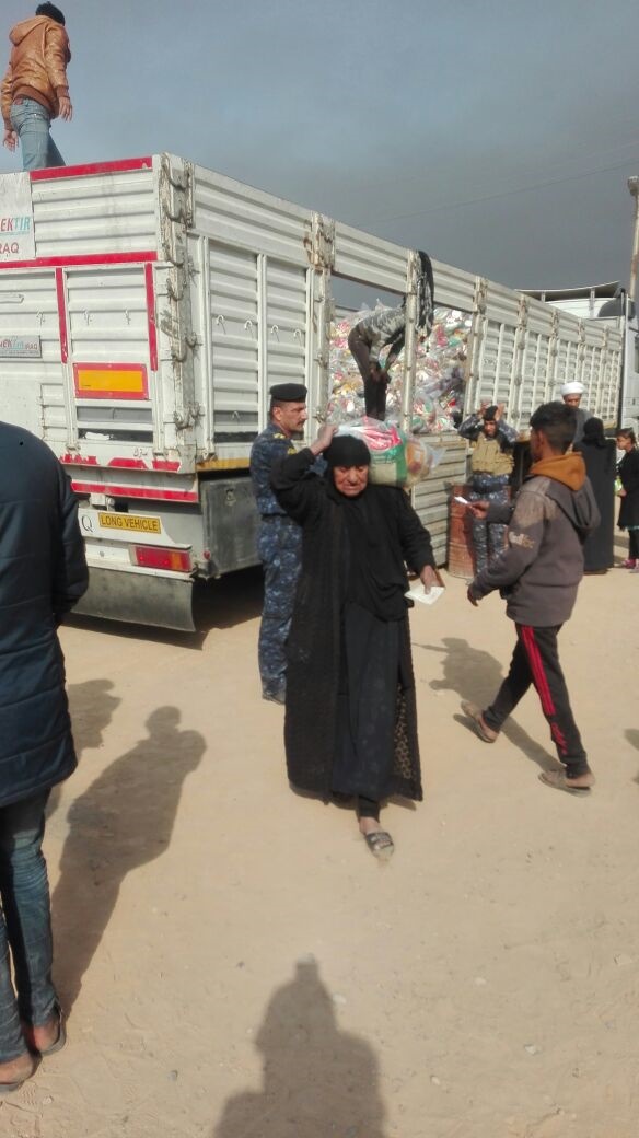 لجنة الاغاثة التابعة لمكتب السيد السيستاني تواصل اغاثة النازحين في القيارة والاهالي يشكرون المرجعية على اغاثتهم في هذه الظروف الصعبة