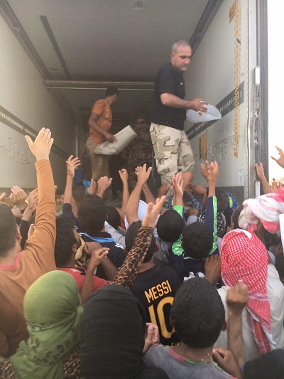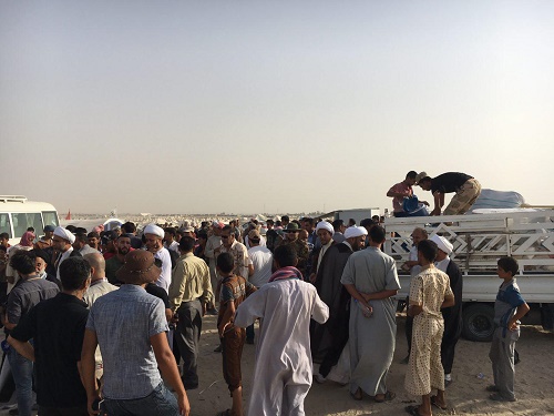 هذا ما لفظته أفواه الإخوة النازحين من مشاهدتهم وفد خلية الإغاثة وهم كلهم ود ومحبة ووئام ويحملون روح التعاون والمسؤلية باتجاه العراقيين .. فبحمد الله ، إنطلقت خلية الإغاثة التابعة لمكتب سماحة الإمام المفدى سماحة السيد السيستاني (دام ظله) لتقديم الإغاثة للنازحين من العوائل الفارّة من بطش داعش ، وكانت محطة قافلة الاغاثة في زيارتها الرابعة للنازحين يوم الثلاثاء الموافق ١٥/ رمضان المبارك المصادف 6/21 في مخيمات ناحية الحبانية في محافظة الأنبار هذا ما صرح به الشيخ باسم النصراوي الى واضاف :