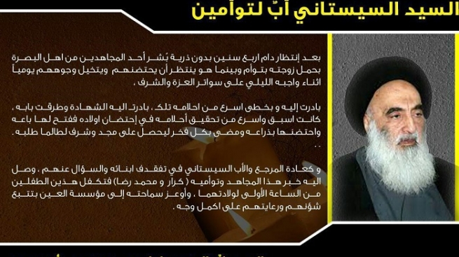 و كعــادة المرجــع والأب السيستاني في تفقــد ابنــائه والســؤال عنهــم ، وصــل اليــه خــبر هــذا المجاهــد وتوأميــه ( كرار و محمد رضا) فتكــفل هــذين الطفلــين مــن الســاعة الأولـى لولادتهمــا ، وأوعــز سماحتــه إلـى مؤسسة العــين بتتــبع شؤنهـــم ورعايتهـــم عـلى اكمــل وجــه .