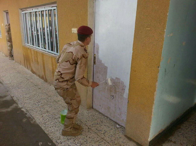 منتسبو الفوج الأول لواء المشاة (٥٥) ينفذون حملة لإعادة ترميم احد المدارس الابتدائية جنوبى بغداد