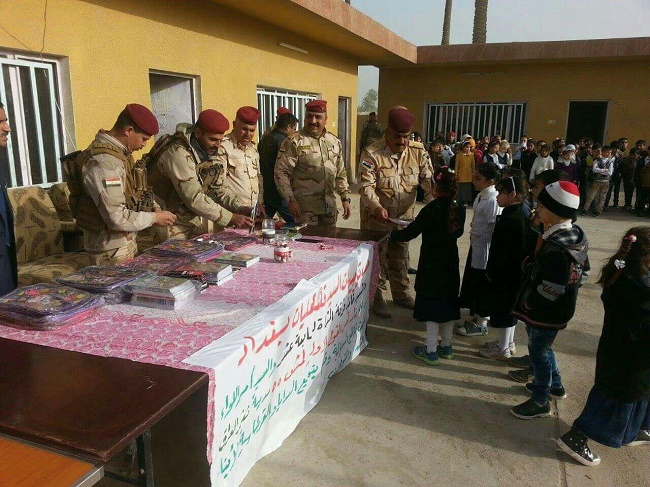 ضمن أسبوع العمل التطوعي لخدمة المواطنين، نفذ أبطال الفوج الأول لواء المشاة الخامس والخمسين فرقة المشاة السابعة عشر وحسب توجيهات قائد عمليات بغداد و قائد الفرقة أعلاه، وخلال الزيارة لمدرسة ثغر العراق الابتدائية في منطقة كراغول، حملة لإعادة ترميم المدرسة حيث باشر منتسبو الفوج بصبغ الشبابيك والأبواب وتصليح الإنارة العاطلة وتوزيع قرطاسيه على الطلبة من أبناء الشهداء والطلبة المتفوقين في الدراسة، كما قام الأبطال بتوزيع مدافئ كهربائية على صفوف المدرسة وذلك لك ينعم الطلبة الأعزاء بأجواء دافئة داخل قاعات الدراسة، بدورهم قدم الكادر التدريسي شكرهم وتقديرهم لقائد عمليات بغداد وقائد فرقة 17 وكافة منتسبي الفرقة على دور القوات الأمنية في حفظ الأمن في مناطق جنوب بغداد ومساعدتهم للأهالي هناك.