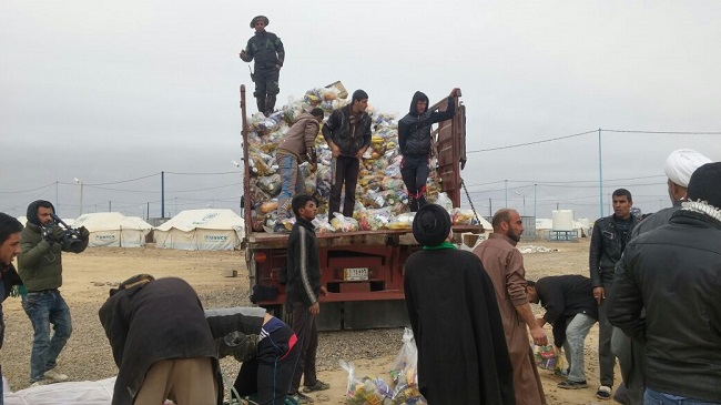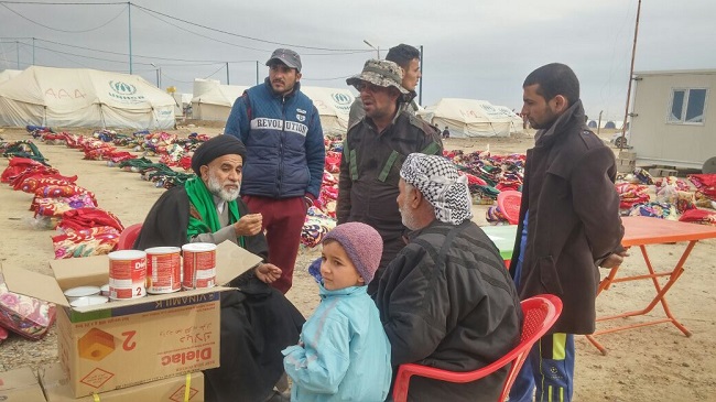توجهت لجنة الإغاثة التابعة الى مكتب السيد السيستاني في النجف الاشرف الى ناحية العلم يوم الخميس المصادف 8 كانون الأول لاغاثة نازحي الحويجة في مخيم اربضه الواقع شمال الناحية التابعة لمحافظة صلاح الدين البالغ عددهم حدود 250 عائلة ولازالت العوائل تنزح من الحويجة الى هذا المخيم وكان في استقبال اللجنة ادارة المخيم والاهالي من قاطني المخيم حيث تم توزيع 350 سلة غذائية و700 بطانية وكذلك حليب للاطفال الرضع وقد شمل التوزيع بعض العوائل من خارج المخيم التي تسكن الهياكل والدكاكين الذين وعدناهم ان ناتي اليهم بعد يومين حتى نشملهم جميعهم والبالغ عددهم حدود 1200 عائلة. وقد عبر الاهالي عن تقديرهم وامتنانهم لمواقف سماحة السيد السيستاني في مساعدتهم وكذلك عندما دعى الى الدفاع عن الوطن والمقدسات متمنين ان تتحرر مدينتهم الحويجة من براثن داعش وكان هذا مطلبهم الاهم حيث طلبوا من اعضاء اللجنة ايصاله الى سماحة السيد لكي تنتهي معاناتهم كما حملوا اللجنة سلامهم وتحياتهم الى سماحته سائلين المولى ان يحفظه ابا رحوما لكل العراقيين .