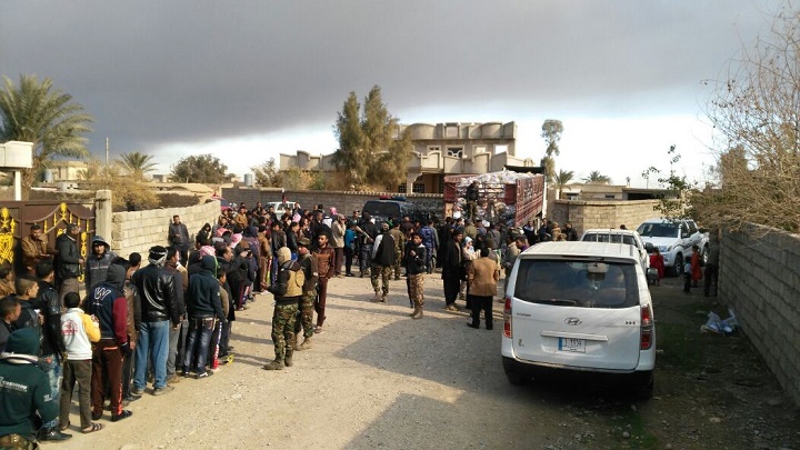وكان اخر موقع للتوزيع هو قرية نصف تل شمال ناحية القيارة وكذلك تم تخصيص كمية من السلال الغذائية لعوائل الشهداء الذين قتلت عصابات داعش ذويهم .ورجعت اللجنة الى مقرها في قاعدة القيارة الساعة السادسةمساء لتستأنف غدا السبت يوم عمل جديد في مخيم المدرج حيث وصل للتو حدود الف عائلة من مناطق تل عبطة والقرى المجاورة .