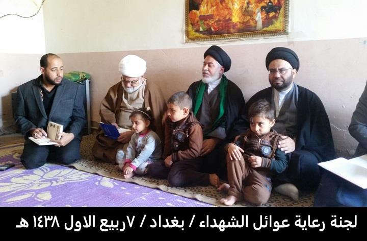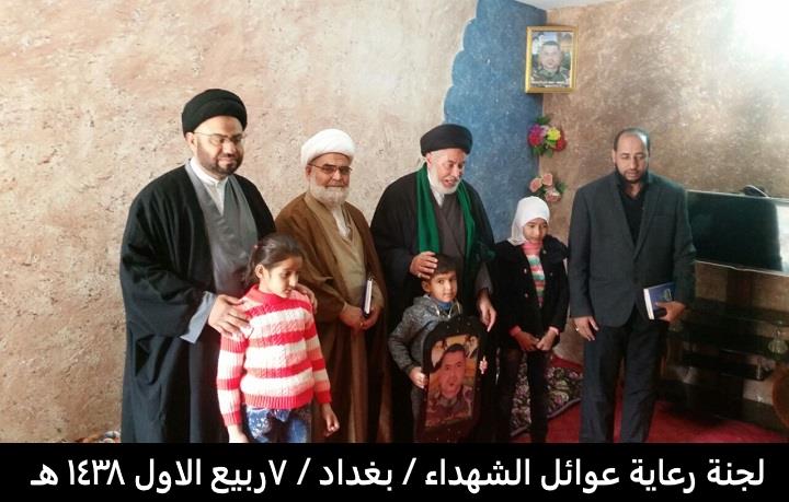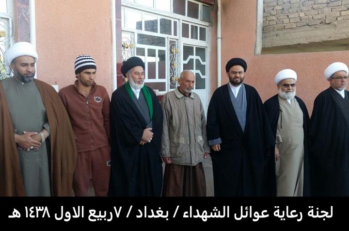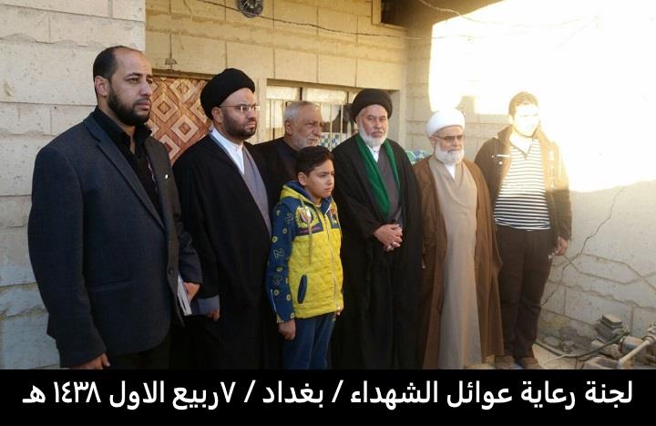 تواصل اللجنة المكلفة من قبل مكتب المرجعية العليا للسيد السيستاني دام ظله وبالتنسيق مع مؤسسة العين للرعاية الاجتماعية التابعة للمرجعية العليا زيارتها لعوائل شهداء الكرامة .ففي التواريخ ٦و٧من ربيع الأول ١٤٣٨ه المصادف٦ و٧من كانون الاول ٢٠١٦م قامت لجنة بغداد لرعاية ذوي الشهداء بزيارة احياء كل من المناطق/الشعب /الحسينية/اليوسفية/التابعة لمحافظة بغداد وتشرفت بلقاء ( ٢٢ ) عائلة من ذوي شهداء الكرامة والإنسانية الذين ذادوا عن حُرم المسلمين وغير المسلمين وقدموا التضحيات لحفظ كرامة الإنسان في العراق هؤلاء الغيارى الذين سطروا للتاريخ اروع الملاحم لحماية الإنسانية من وحوش العصر الدواعش الانجاس فهنيئا لهم مقام الشهادة فخر الدنيا وربح الآخرة.وكذلك ذويهم الكرام زادهم الله شرف وتكريم بأبنائهم النبلاء.