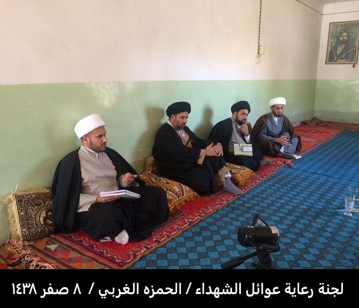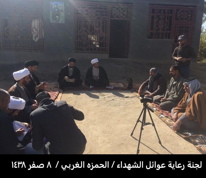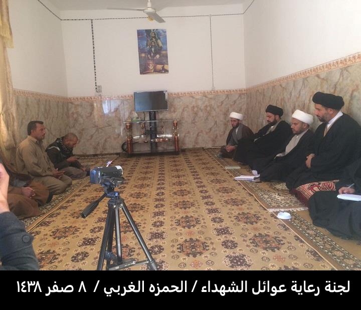 تواصل لجنة (بابل وكربلاء)المكلفة من قبل مكتب المرجعية العليا وبرفقة مؤسسة العين للرعاية الاجتماعية التابعة الى المرجعية الدينية العليا لسماحة السيد السيستاني دام ظله تفقدها وزيارتها لعوائل الشهداء فكان لنا الشرف بزيارة (٢٩) عائلة في مدينة الحمزة الغربي منطقة مشيمش بتاريخ (6 ، 7 ، 8 )صفر ١٤٣٨هـ فاستلهمنا منها الإباء والشموخ بأن دفعت افلاذ اكبادها ثمناً لولائها لآل بيت رسول الله بعد ان نقلنا لها سلام وتعازي ودعاء واهتمام المرجعية الدينية العليا البالغ بها وعرفانا منها لِما لِهذه الدماء من آثارعظيمة في حفظ البلد ومقدساته ورفعته ورفعة ابناءه .