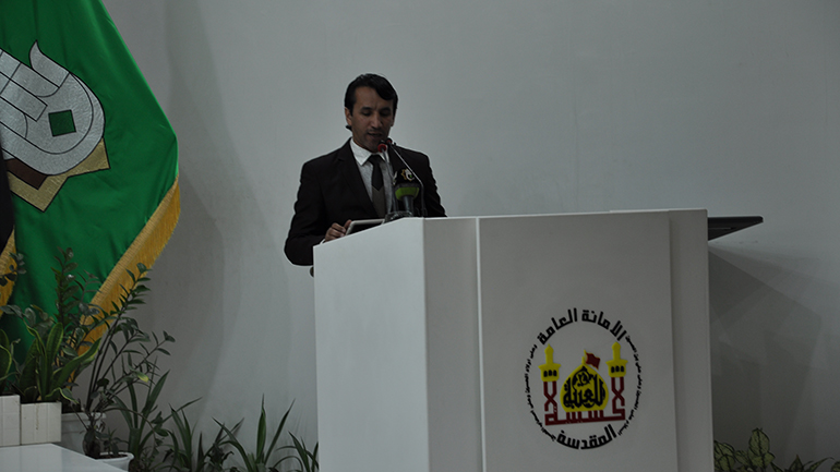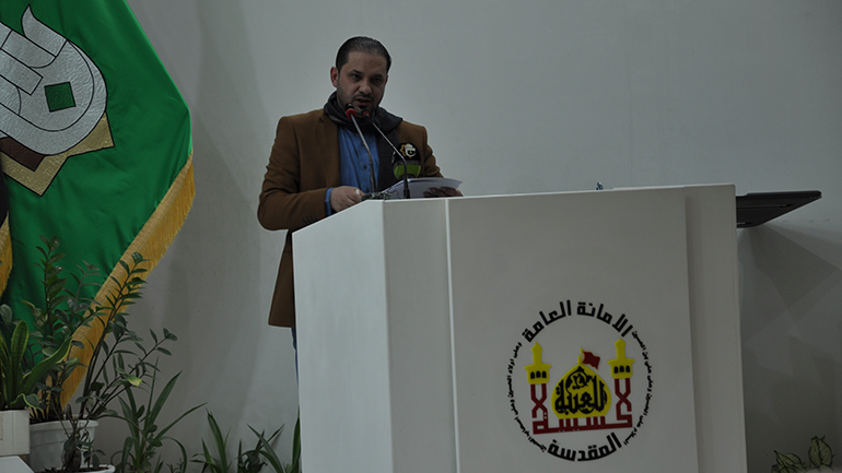 وألقى كلمة العتبتين سماحة الشيخ حمزة الفتلاوي, وقال في جانب منها "ان العتبتين المقدستين أصبحتا الرئة التي يتنفس منها العراقيون, لما تقومان به من مشاريع وخدمات صحية وتعليمية ودعم الفقراء والمعوزين وجهودهم في دعم القوات الأمنية والحشد الشعبي بمختلف صنوفها وعناوينها".