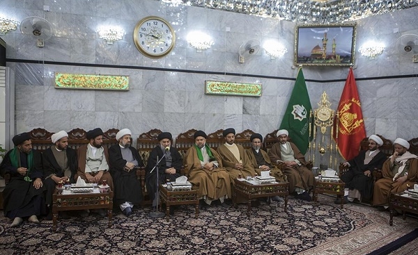 سماحة المتولي الشرعي للعتبة العباسية المقدسة يستقبل جمعاً من فضلاء الحوزة العلمية المرابطين مع المقاتلين..
