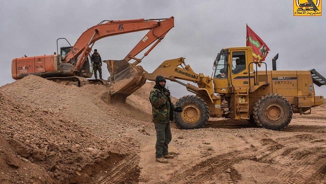 1_ الحشد الشعبي : قوات الحشد الشعبي / وحدات هندسة الميدان تواصل اعمالها في فتح الشوارع وانشاء السواتر حول المدن المحررة غرب الموصل وتلعفر .