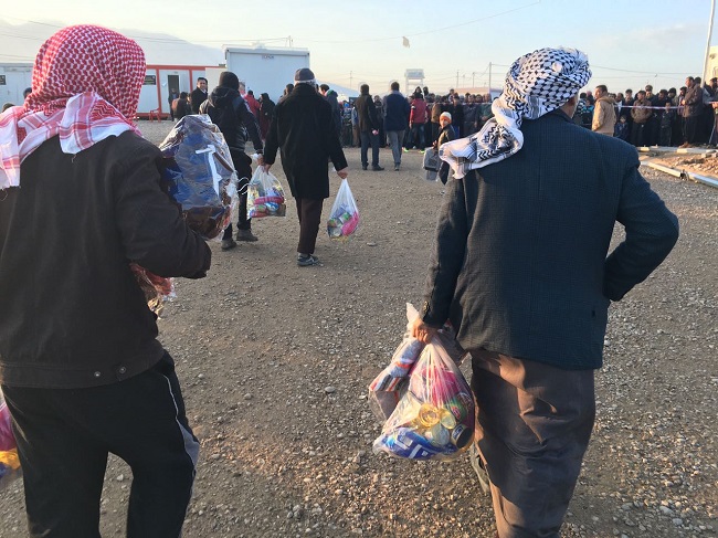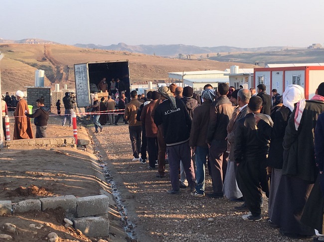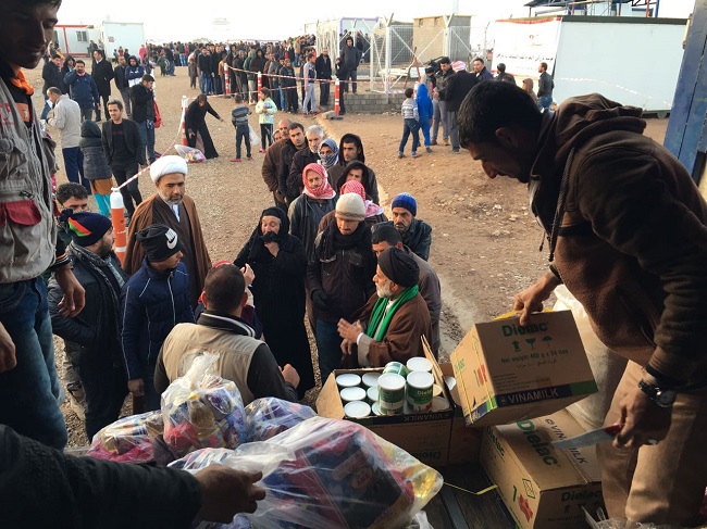 بتوجيه من مكتب سماحة السيد المرجع الاعلى، قامت لجنة الإغاثة التابعة الى مكتب سماحة السيد السيستاني ( ادام الله بقائه ) في النجف الاشرف يوم الاحد 18 كانون الاول بعد اقامتها في اربيل بزيارة الى مخيم حسن شامي الذي يقع قرب نهر الخازر في ناحية حسن شامي والذي يضم 2500 عائلة نازحة من الموصل.بواقع عشرة الاف نسمة وقد جلبت اللجنة معها 2500 سلة غذائية وحليب اطفال رضع وملابس اطفال بمختلف الاحجام وملابس نساء وماء بحدود 3500 سيت .وكان استقبال الاهالي للجنة استقبال حار مفعم بمشاعر الاحترام والتقدير لمقام المرجعية المباركة على شمولهم بهذه الرعاية الابوية من لدن سماحته حيث عبروا من خلال كلماتهم عن شكرهم لسماحة السيد المرجع الاعلى قائلين مادام سماحته لم ينسانا فنحن لن ننساه من الدعاء والحمد لله سارت عملية التوزيع بانسيابية عالية الى مابعد المغرب وبهذا تكون اللجنة قد فرغت من المحطة الاولى .