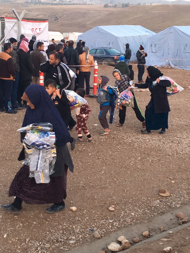 بعد زيارة مخيم حسن شامي ( 3 ) كانت المحطة الثانية للجنة الإغاثة التابعة الى مكتب سماحة السيد السيستاني ( ادام الله بقائه ) في النجف الاشرف ، هي مخيم قيماوه في محافظة دهوك والذي يقطنه حدود الف عائلة نازحة من منطقة تلكيف وما حولها من محافظة نينوى وتم توزيع سلة غذائية لكل عائلة مع ملابس اطفال وحليب اطفال رضع وقد عبر النازحون عن شكرهم لسماحة السيد وتقديرهم لرعايته الابوية لهم في هذه الظروف العصيبة وقالوا لم نتلقى مساعدات بهذه الكمية والنوعية الا هذه المقدمة من قبل سماحة السيد السيستاني الذي شمل بعطفه كل العراقيين بكل الوانهم واطيافهم.
