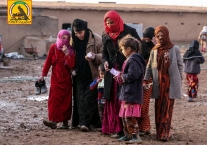 بالصور.. الحشد الشعبي يقدم مساعدات إنسانية للعوائل النازحة قرب ناحية تل عبطة