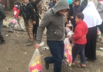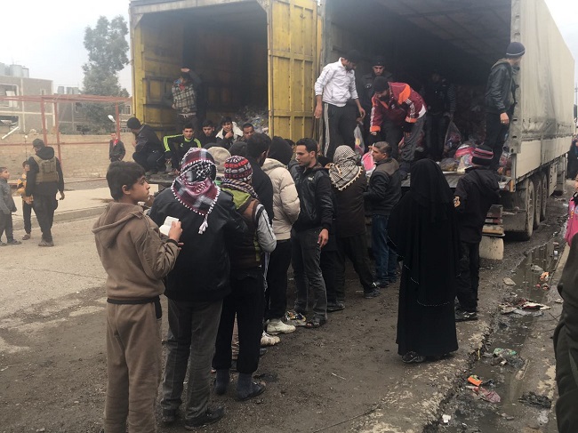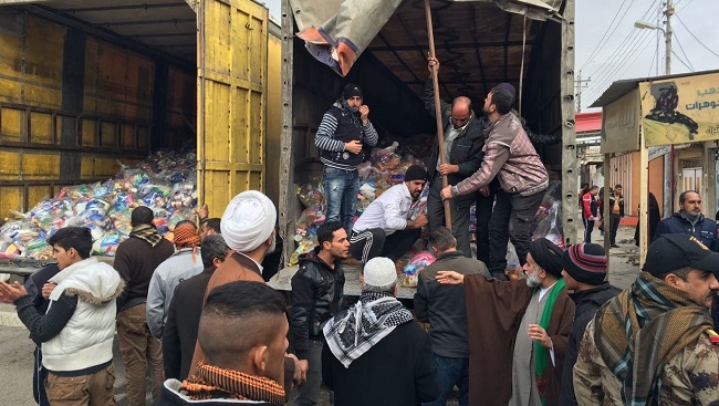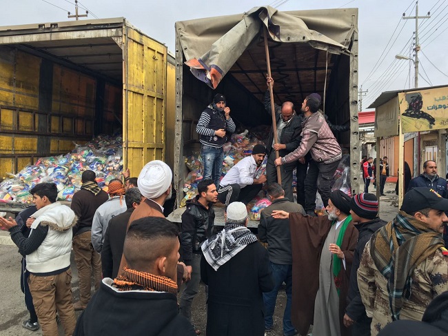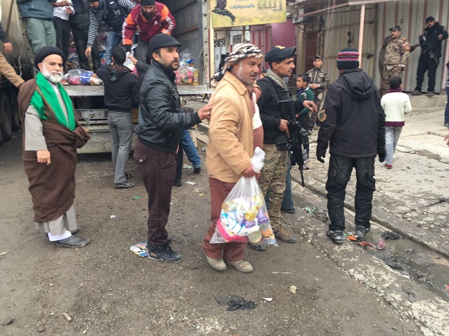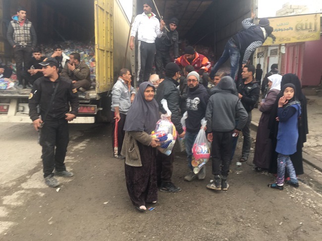 مساعدات المرجعية الدينية العليا تصل الى الاحياء المحررة في الساحل الايسر من الموصل