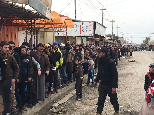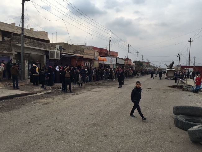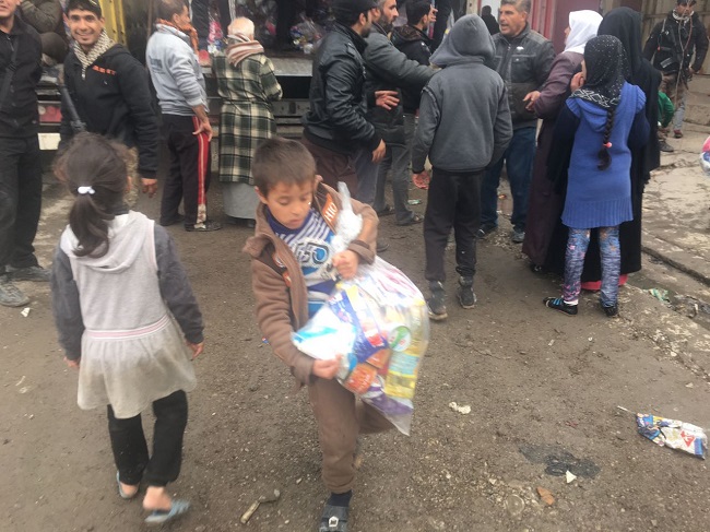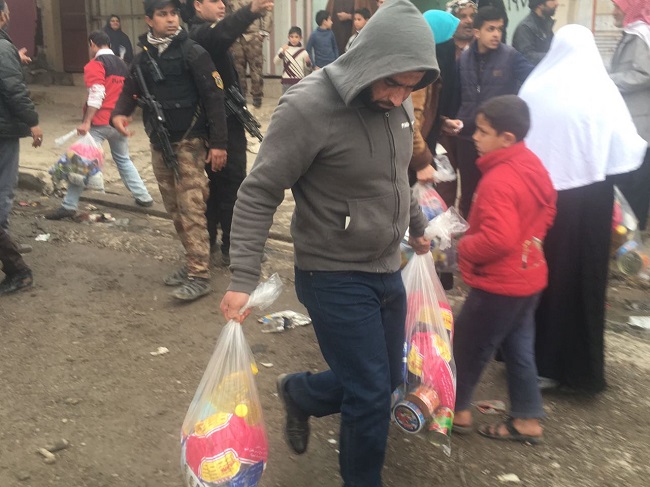 بعد مخيم حسن شامي في الخازر ومخيم قيماوه في دهوك زارت لجنة الإغاثة التابعة الى مكتب سماحة السيد السيستاني في النجف الاشرف الاحياء المحررة في الساحل الأيسر من الموصل يوم الاربعاء الموافق 21 كانون الاول. بالتنسيق مع قوة جهاز مكافحة الإرهاب الأبطال وهذه الاحياء هي حي السماح والشيشان وحي عدن والشقق الخضراء وكان التوزيع قد تمركز في حي عدن حيث تم توزيع اربعة آلاف وخمسمائة سلة غذائية على اهالي هذه الاحياء حيث تمت عملية التوزيع بانسيابية عالية ويسر وعبر خلالها اهالي الموصل عن عظيم امتنانهم وشكرهم على شمولهم بعطف وابوة سماحة السيد السيستاني وان المرجعية قد وصلت الى هذه المناطق المحررة وهذا بحد ذاته شوكة في عيون الاعداء متمنين استمرار هذه المساعدات لما لها من نتائج وثمار معنوية.