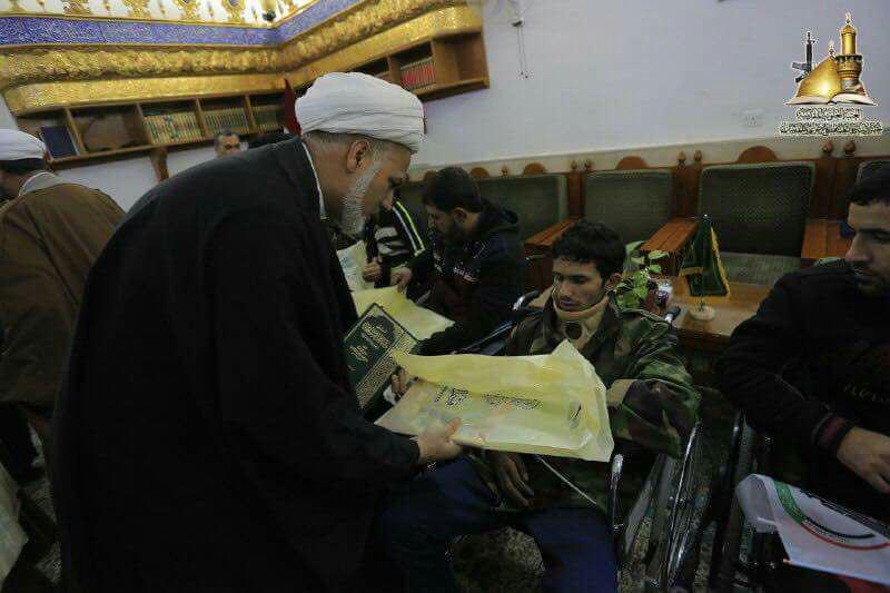 فقد افاد سماحته ان ” اللجنة مع مجموعه من فضلاء الحوزة العلمية الشريفه استقبلت وبحفاوة بالغة ، في مرقد الإمام أمير المؤمنين (عليه السلام ) مجموعة من الجرحى الأبطال الذين وقفوا وقفتهم المشهودة بالدفاع عن الأرض والعرض والمقدسات، ولولا هذه التضحيات لما نَعمََ العراقيون بمختلف مكوناتهم وتوجهاتهم بالأمن والآمان”.