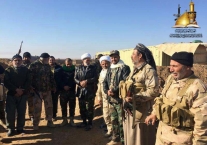 العتبة العلوية تطلع على اوضاع المقاتلين في جبال مكحول وتقلد موكب اهالي الدجيل بوشاح امير المؤمنين ( ع )