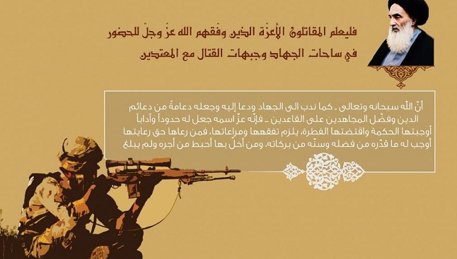 ما يمر فيه العراق من حرب لصد العصابات الارهابية, تعد الاشرف والانبل منذ مئات السنين, وهذا المقام السامي, جاء كون المعارك نتاج للفتوى المقدسة للمرجعية الدينية بالجهاد الكفائي, التي سطرت لنا دروس وعبر في الايثار والتضحية والشجاعة والفداء, شباب بمقتبل العمر تزفهم امهاتهم لمنازلة الباطل, وهي تعلم انه قد يرجع او لا يرجع, لكنها تتأسى بالصديقة الطاهرة قربة لله تعالى.