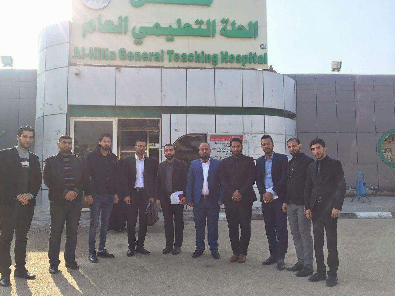 تلبية لنداء المرجعية الدينية العليا قام المشروع الثقافي لشباب العراق/فرع بابل/ناحية الحمزه الغربي/ بزيارة ميدانية الى مستشفى الحلة التعليمي لتفقد جرحى قواتنا اﻻمنية والحشد الشعبي، وكان برفقتنا منسق العام للمحافظة ورئيس لجنة الثقافة والاعلام ومنسق الناحية ، ومن خلال هذه الزيارة تم توجيه الشكر الى السيد مدير المستشفى المحترم دكتور احمد صباح والكوادر التي تسعى ليل ونهار لخدمة جرحانا.