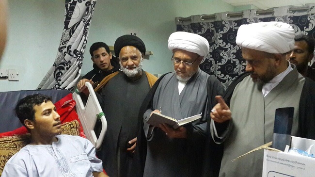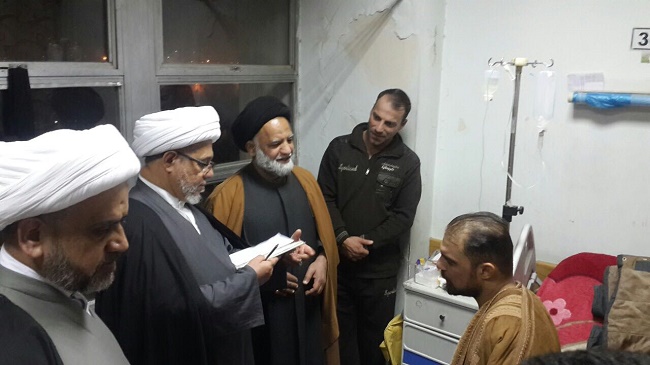 بعد ان وصلنا خبر وجود جرحى من الحشد الشعبي والجيش والشرطة في مستشفى الجراحات التخصصية ومستشفى بغداد في يوم الأربعاء 2017/1/5 توجهنا في اليوم التالي بعد صلاة العشائين الى هناك لزيارة هؤلاء الجرحى وكان عدد الجرحى الأبطال ١٥جريح ١١من الحشد المقدس و٤ جرحى من القوات الاخرى البطلة هذا ما صرح به الشيخ كاظم العبودي عضو لجنة رعاية الجرحى التابعة لمكتب سماحة السيد السيستاني دام ظله الوارف واضاف :