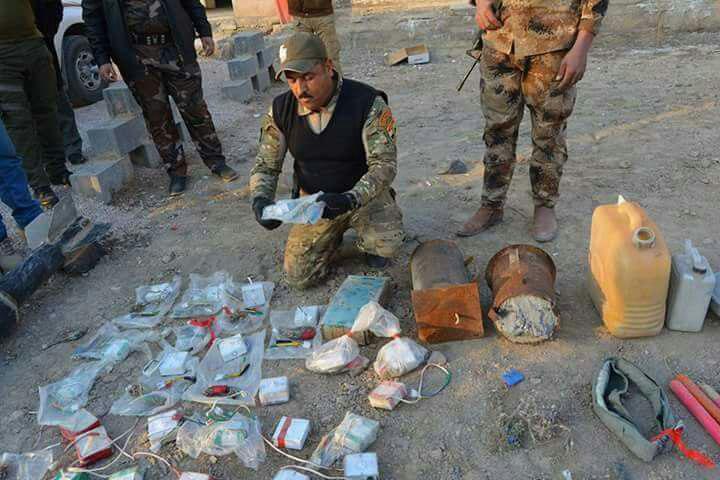 بالصور ..شرطة الانبار والامن الوطني يعثرون على احزمة ناسفة وعبوات معدة للتفجير جنوبي الرمادي