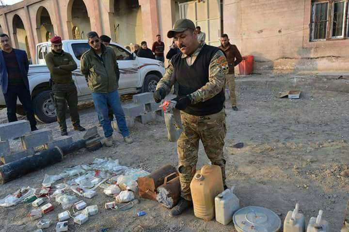 افاد مصدر امني في محافظة الأنبار اليوم ، الأحد ، بأن "شرطة الانبار والامن الوطني يعثرون على احزمة ناسفة وعبوات معدة للتفجير وصواريخ كراند ومساطر للتفخيخ في عملية شنتها على منطقة الحميرة جنوبي مدينة الرمادي ".