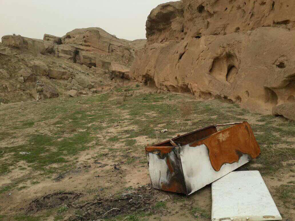 وخلال البحث عثرت القوات على (١٠) عبوات ناسفة مزروعة لاعتراض تقدم أحد المحاور تمت معالجتها من قبل هندسة الفرقة، وعثرت القوات ضمن محور ثانِ على (٦) مضافات في الوديان الضيقة والعميقة تم تدميرها.