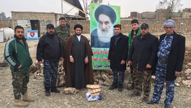 توجهنا يوم الخميس٢٠١٧/١/٢٦ وبدانا بالتوزيع في يومي الجمعه والسبت بالدعم المادي والمعنوي لكل ( كتائب جند الأمام ، لواء المنتظر ، عصائب أهل الحق ، كتائب سيد الشهداء ، تشكيلات فرقه الأمام علي القتالية ، مديرية.الهندسه العسكريه(هيئه الحشد ) ، قوات االسيد الشهيد الصدر الاول ، بعض القطعات العسكريه المممتده على الخطوط من (سامراء -بيجي) و(بيجي -الكياره) و (الكياره - جرن )ومن (منطقة جرن الى مشارف منطقة المحلبيه على السواتر الاماميه) .