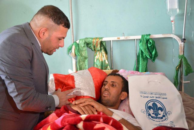 زيارة جرحى القوات الامنية هي من اهداف الحملة الجديدة التي يطلقها كشافة الامام الحسين