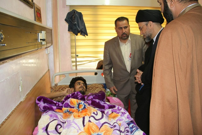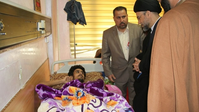 السيد رئيس ديوان الوقف الشيعي ورئيس اللجنة العليا لدعم الحشد الشعبي يتفقدان الجرحى في مدينة الصدر الطبية