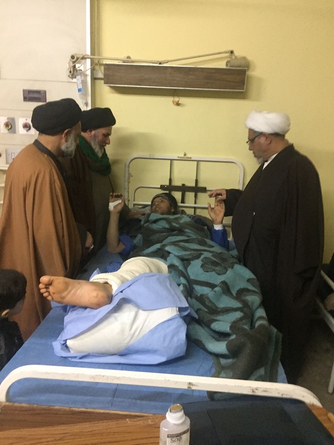 قام وفد المرجعية الدينية العليا المتمثل بلجنة رعاية الجرحى بتفقد جرحى معارك العز والشرف الراقدين في مستشفى بغداد التخصصي والبالغ عددهم ( 21 ) جريحا كان ( 15 ) منهم من الحشد الشعبي الابطال و ( 6 ) من القوات الامنية البطلة ، و تم ابلاغهم سلام ودعاء المرجعية العليا ورعايتها الابوية لهم هذا ما صرح به الشيخ كاظم العبودي عضو لجنة رعاية الجرحى التابعة لمكتب السيد السيستاني دام ظله قائلا .