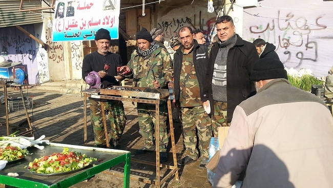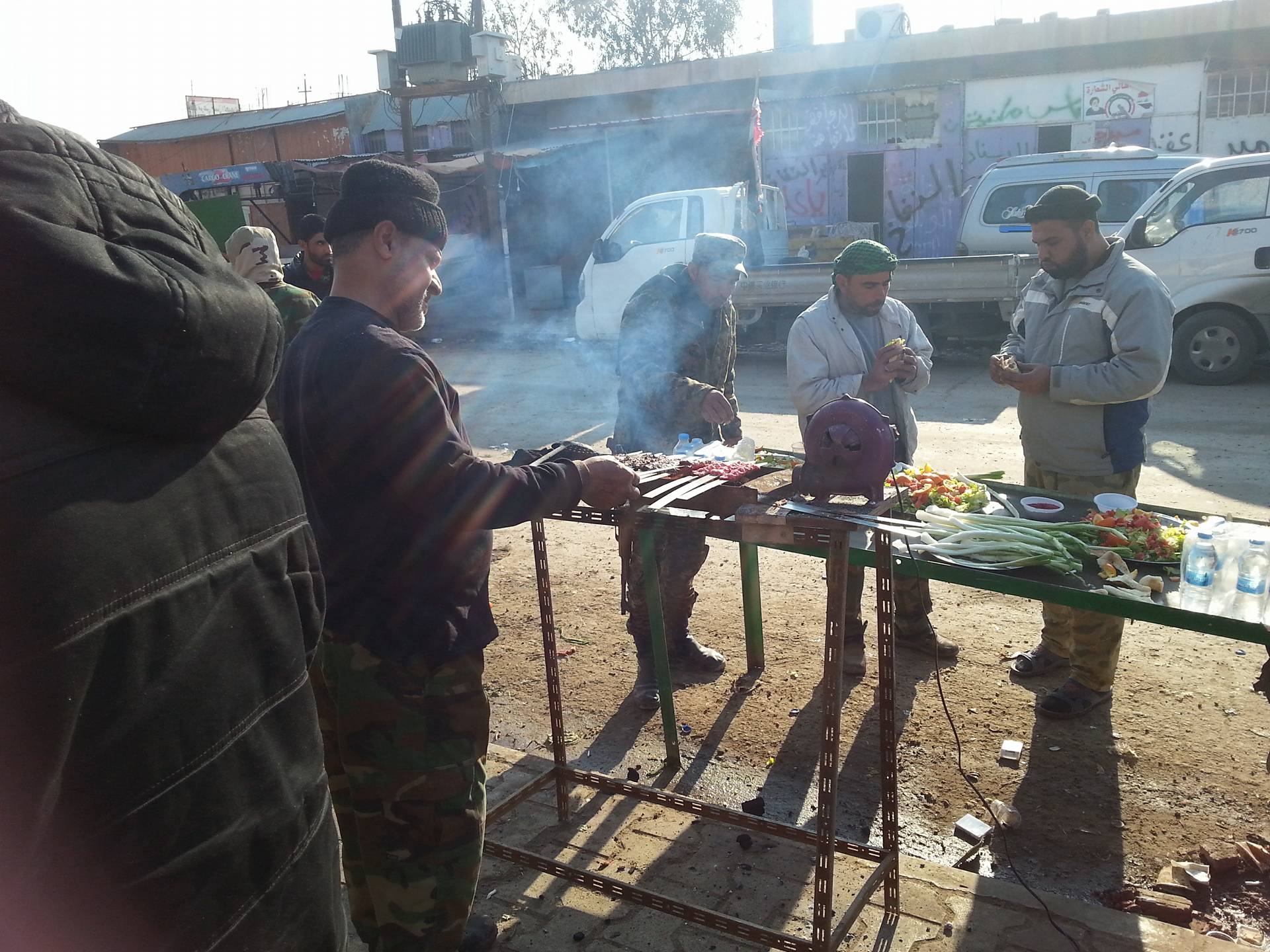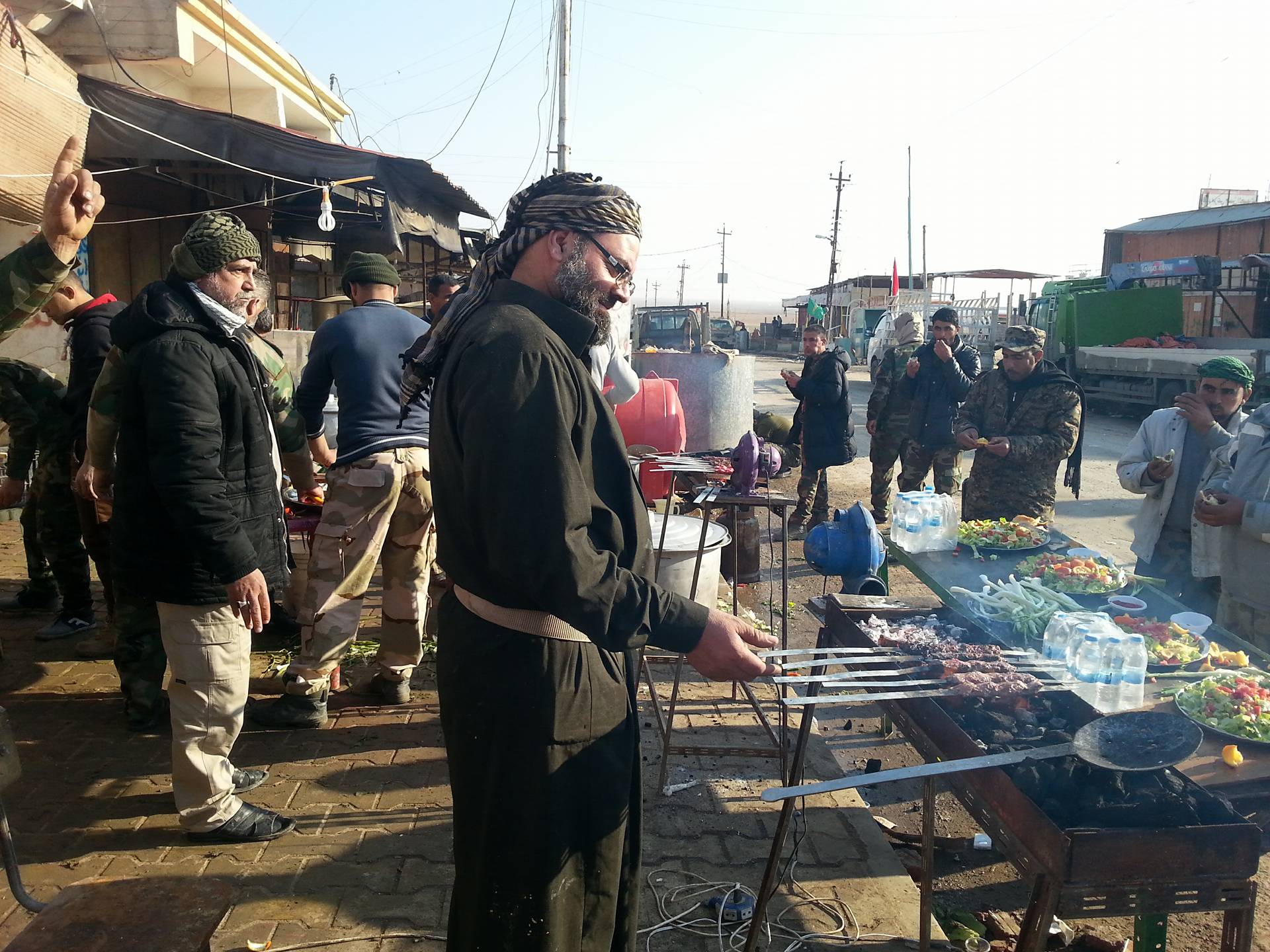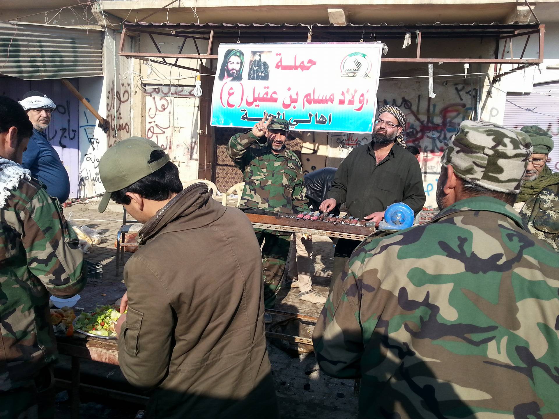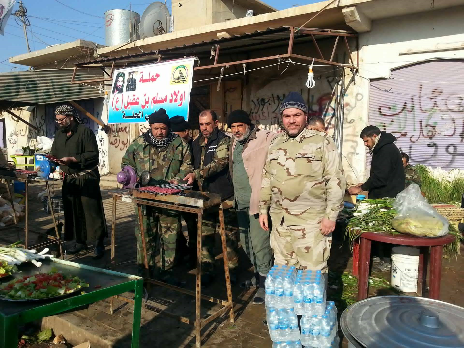 مشيرا الى انه فجر الجمعة توجهنا عائدين ووصلنا الى تل عبطة فكان هنالك موكب مسلم عقيل والذي نشترك معه لتزويد المجاهدين بالطعام سواء العائدين المجازين والملتحقين للقتال والمقاتلين على الساتر وقد كان لنا حديث مع أحد المتطوعين في هذا الموكب عقيل الخفاجي من اهالي الحلة : هذا الموكب دائم ومستمر لرفد المجاهدين بكافة انواع الطعام ولثلاث وجبات ونقوم بايصال وجبات الطعام للمجاهدين في الساتر الأمامي ولبقية المجاهدين المارين من تل عبطة وكذلك حمﻻت الدعم اللوجستي العائدين من السواتر الآمامية .