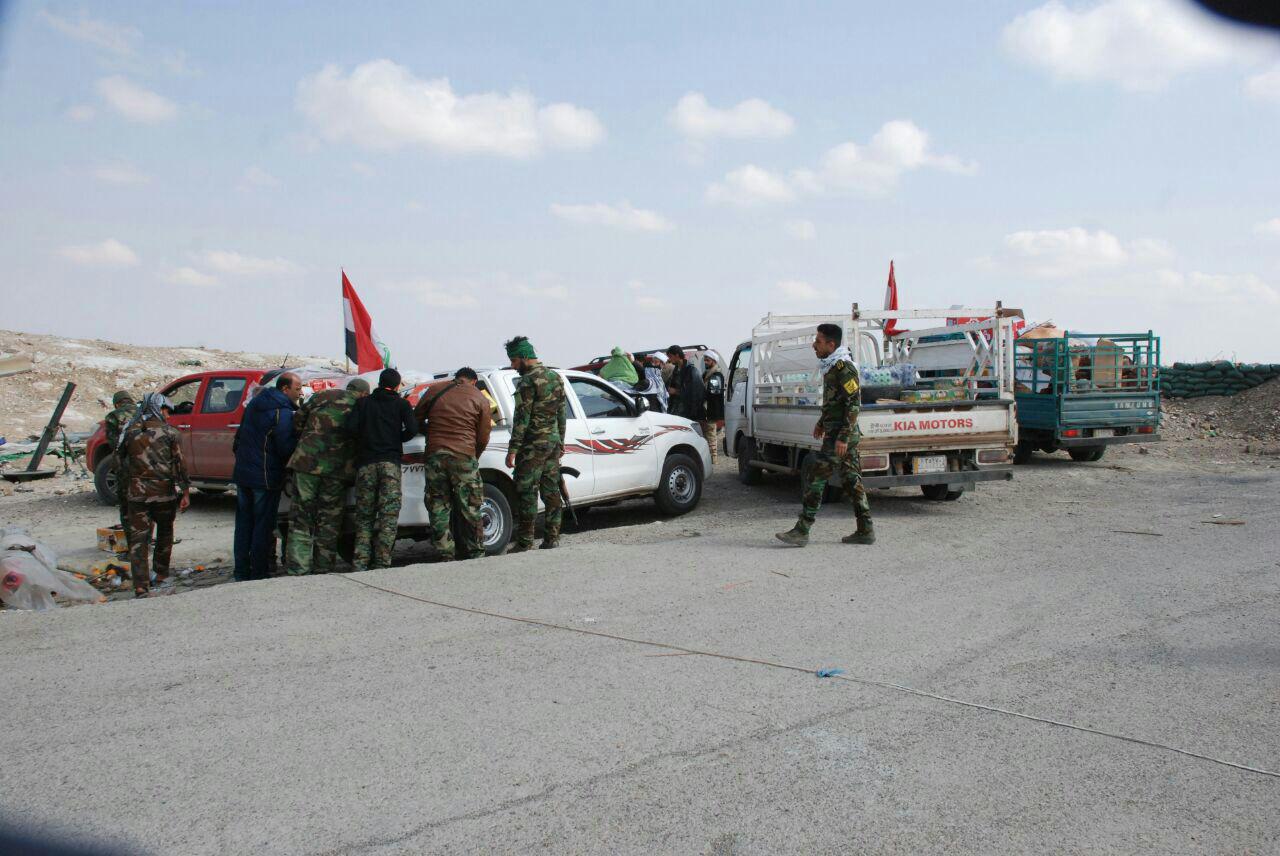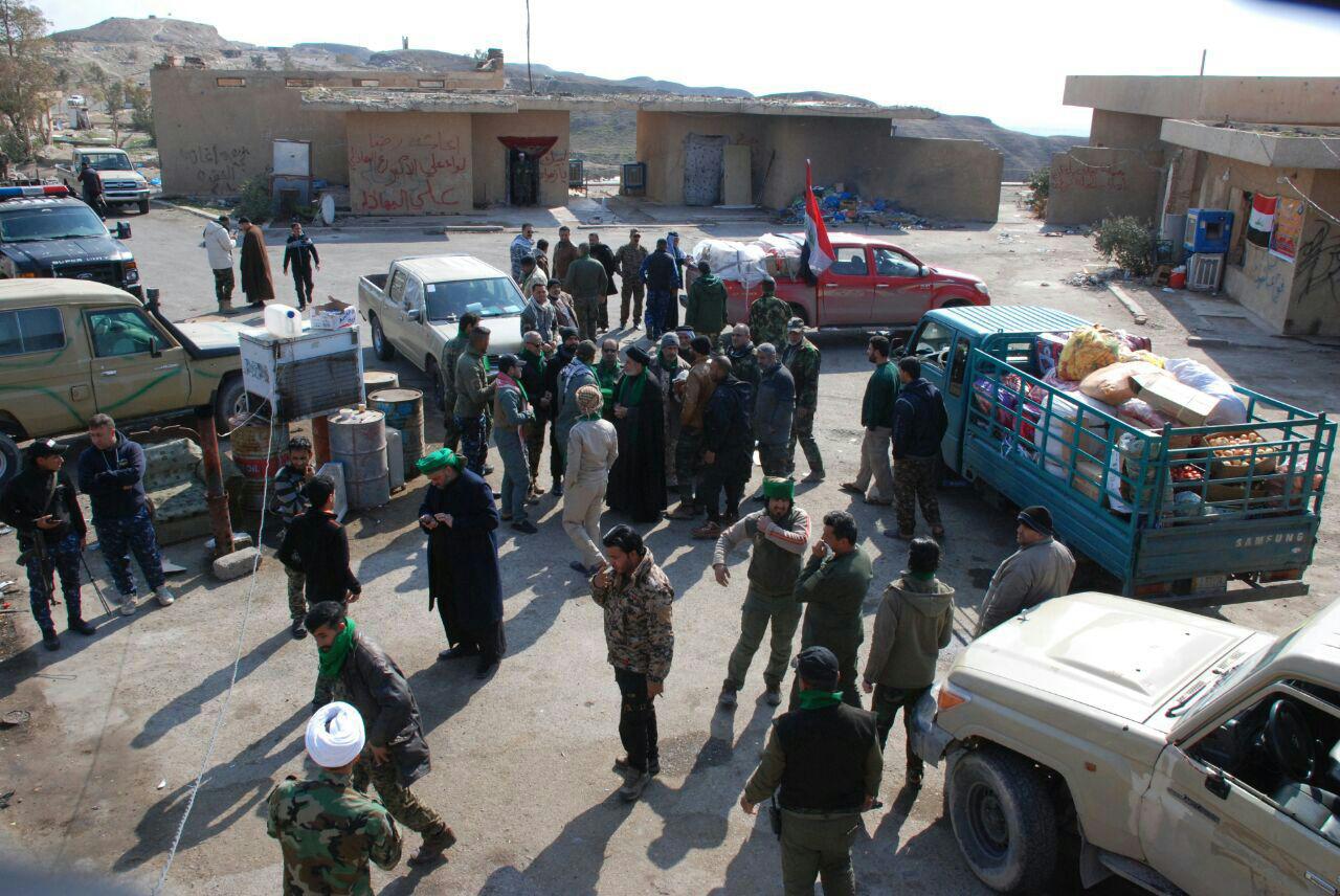 واضاف الموسوي قام الوفد بايصال وجبات افطار وغداء وعشاء ومواد غذائية (الطرية والجافة) . وكميات من المياه وكميات من الفاكهة والخضر والعصائروالسكائروكميات كبيرة من البطانيات والقماصل (كليتات وجواريب وكفوف وملابس داخلية) ومساعدات مالية مقدمة من مكتب المرجعية العليا وكذلك تبرعات اهالي حي العامل يدا بيد للمتطوعين وأبلغ الوفد المقاتلين الابطال سلام ودعاء وتوصيات المرجعة العليا (دامت بركاتها) واستقبل الوفد وودع بحفاوة وابتهاج من قبل المقاتلين الأبطال وهم فوق أعالي سلسلة جبال مكحول المطلة على بعض بؤرالدواعش والذين يختبؤن كالجرذان في جحورهم .