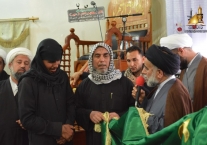مشيرا ان "الوفد قام بتسليم راية أمير المؤمنين عليه السلام لعوائل الشهداء في محافظتي البصرة وذي قار".