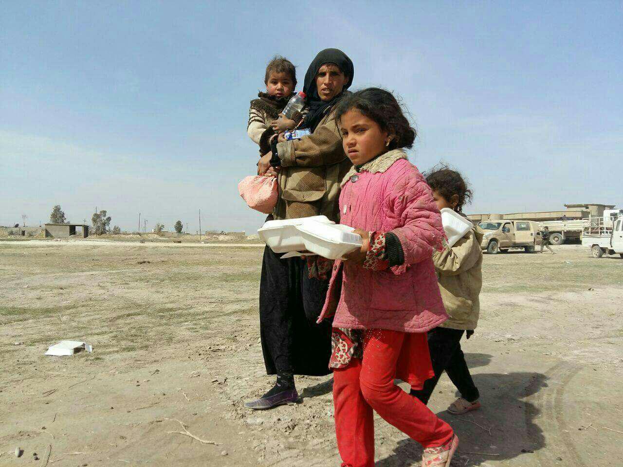 بالصور... لواء علي الأكبر يخلي النازحين غرب الموصل ويقدم لهم الخدمات .