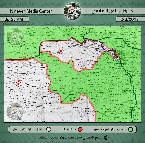 آخر التطورات الميدانية لعمليات قادمون يا نينوى حتى الساعة 19:00 الخميس 02 ـ 03 ـ 2017
