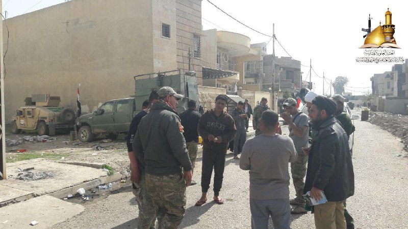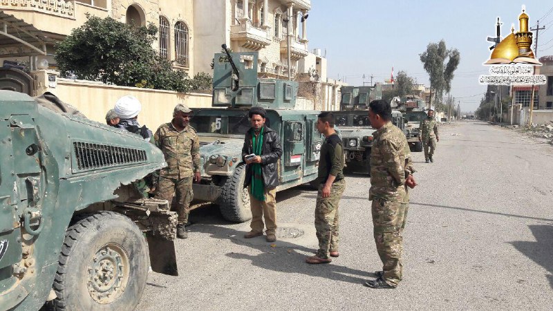 مبلغو العتبة العلوية يشاركون بتحرير حي الجوسق في الموصل وإيصال سلام وتوجيهات المرجعية العليا الى مقاتلي الاتحادية والرد السريع